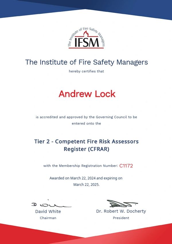Firewise Risk Assessors are qualified members of the The Institution of Fire Engineers and The Institute of Fire Safety Managers, experienced in fire safety matters and in dealing with local authority fire services. We aim to provide you with the best independent, proportional, and technical solutions available.